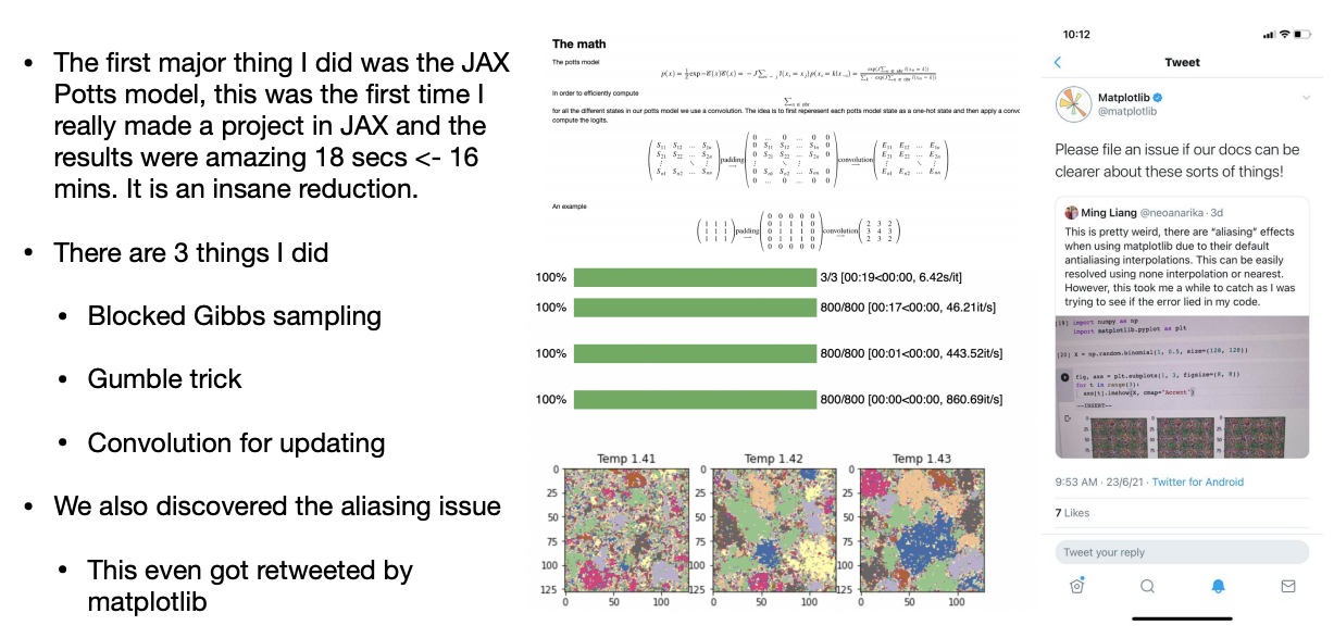 This page summarizes the contributions made to the pyprobml repo by some awesome members of the GSOC and Outreachy communities during the summer of 2021. The students were mentored by Kevin Murphy and Mahmoud Soliman.